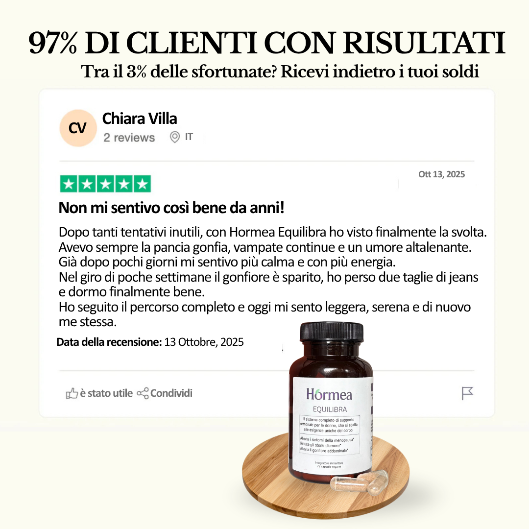 Hormea Equilibra è l’integratore creato per aiutarti a riequilibrare gli ormoni in modo naturale e sentirti di nuovo bene nel tuo corpo.
